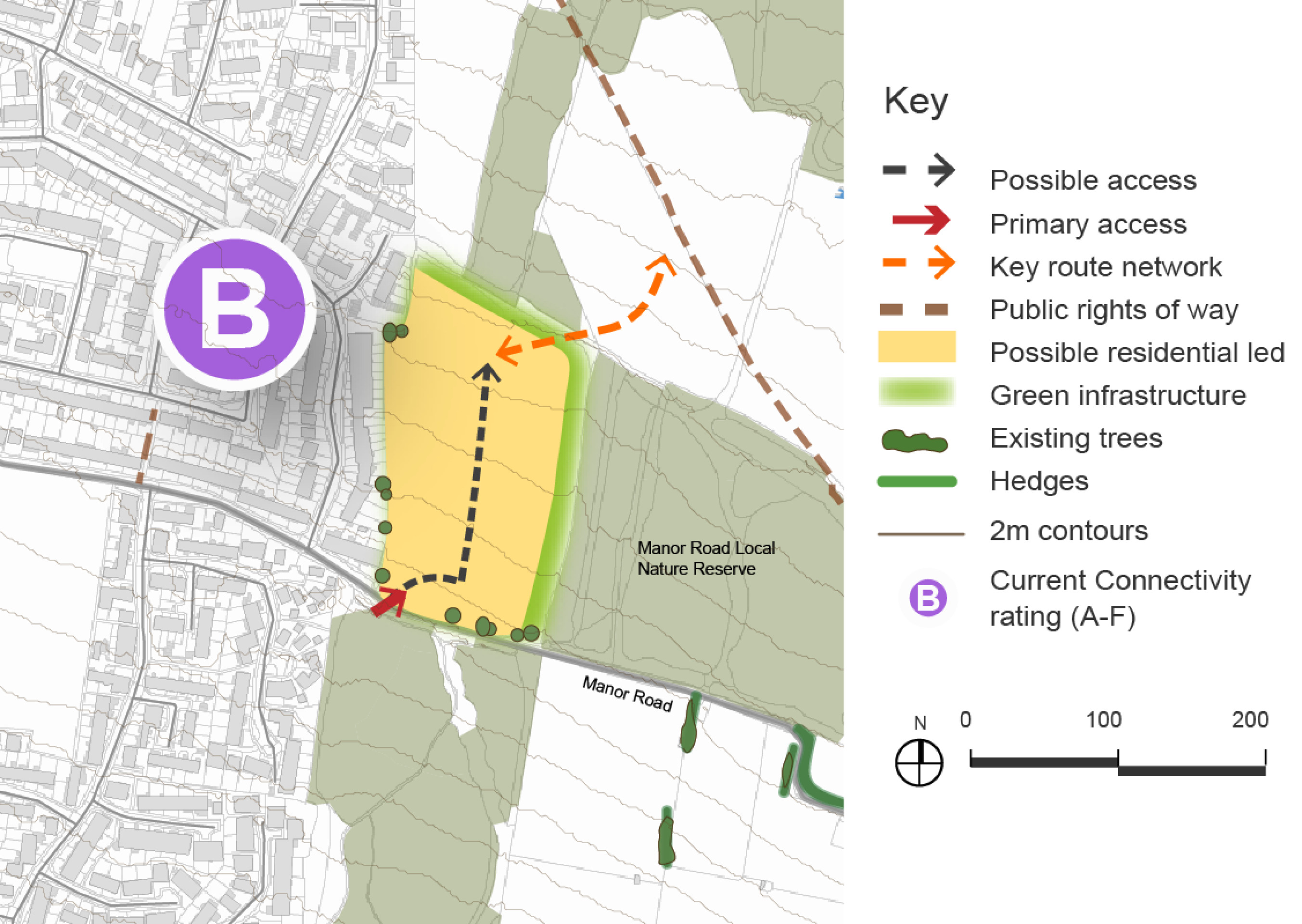 The site forms a small part of a gap between Keynsham and Saltford Village along the single lane Manor Road which has the potential to become a ‘Quiet Lane’.