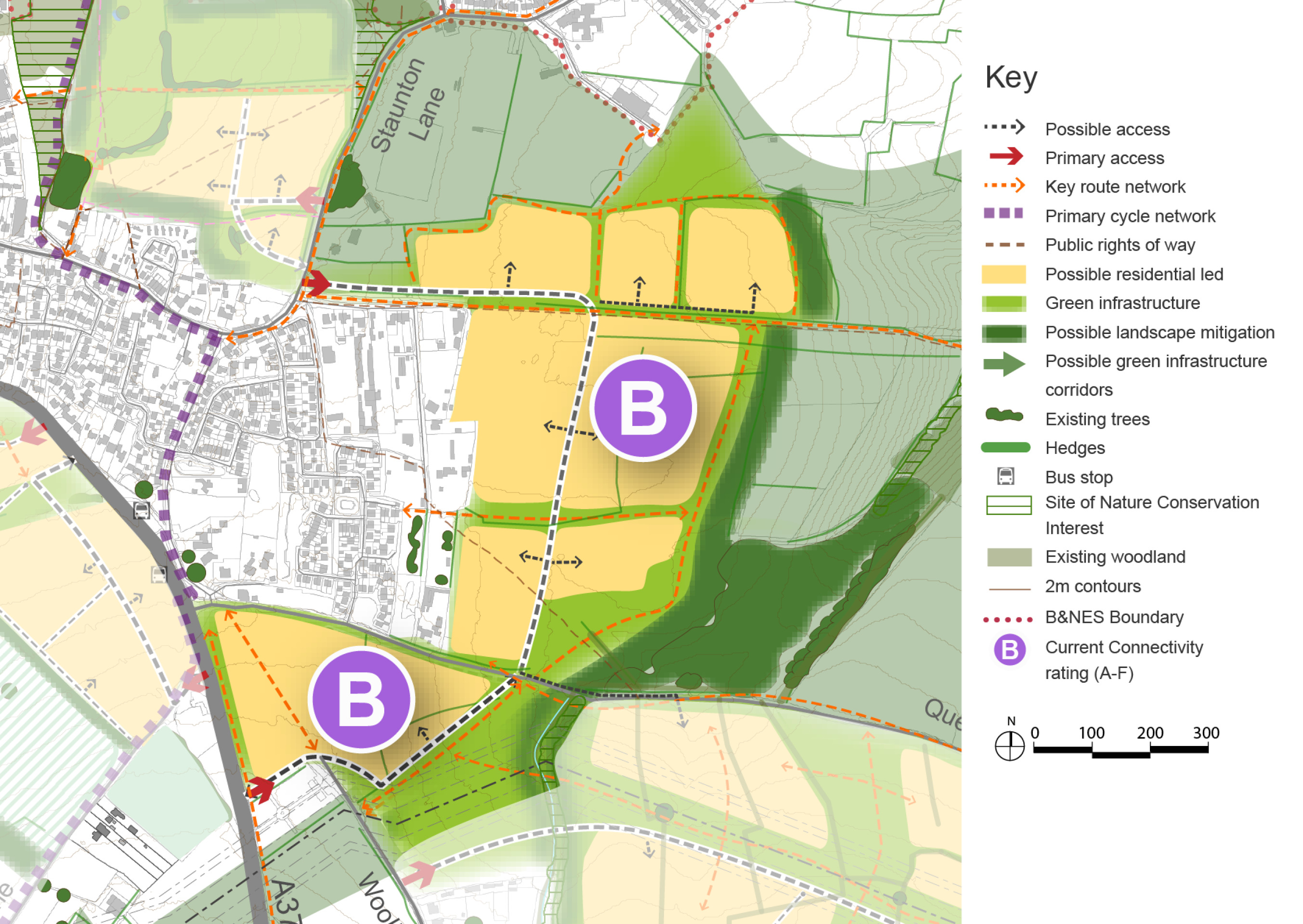 The East Whitchurch site comprises two main parcels land; the land adjoining the village to the east, currently occupied Horseworld and the land located directly east of the A37 between the A37 and Queen Charlton Road