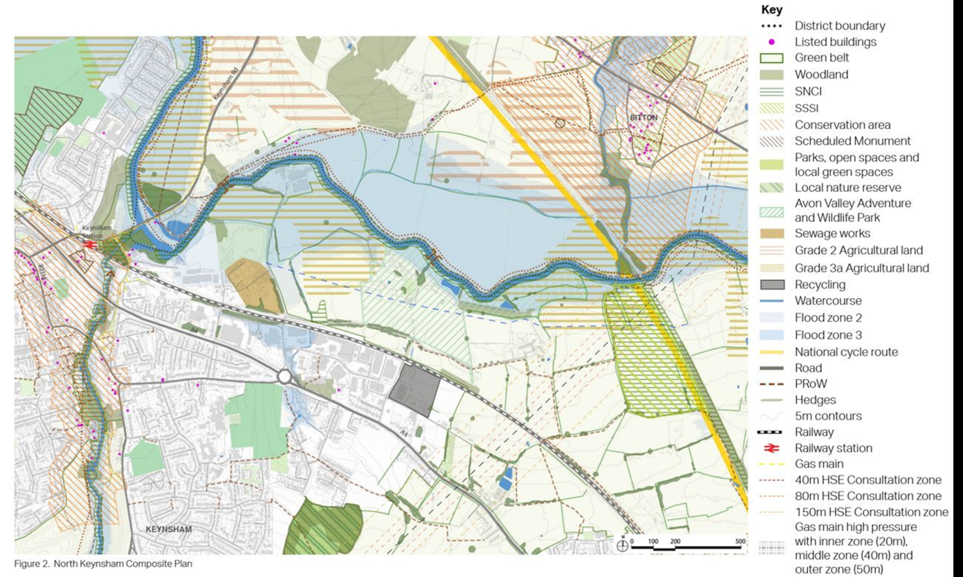 The option for potential development at West Saltford (see page 117), will need to be considered in conjunction with this North Keynsham option, with regards to maintaining a sufficient green gap between Keynsham and Saltford to avoid coalescence and provide high quality accessible open space, which are priorities for both settlements.
