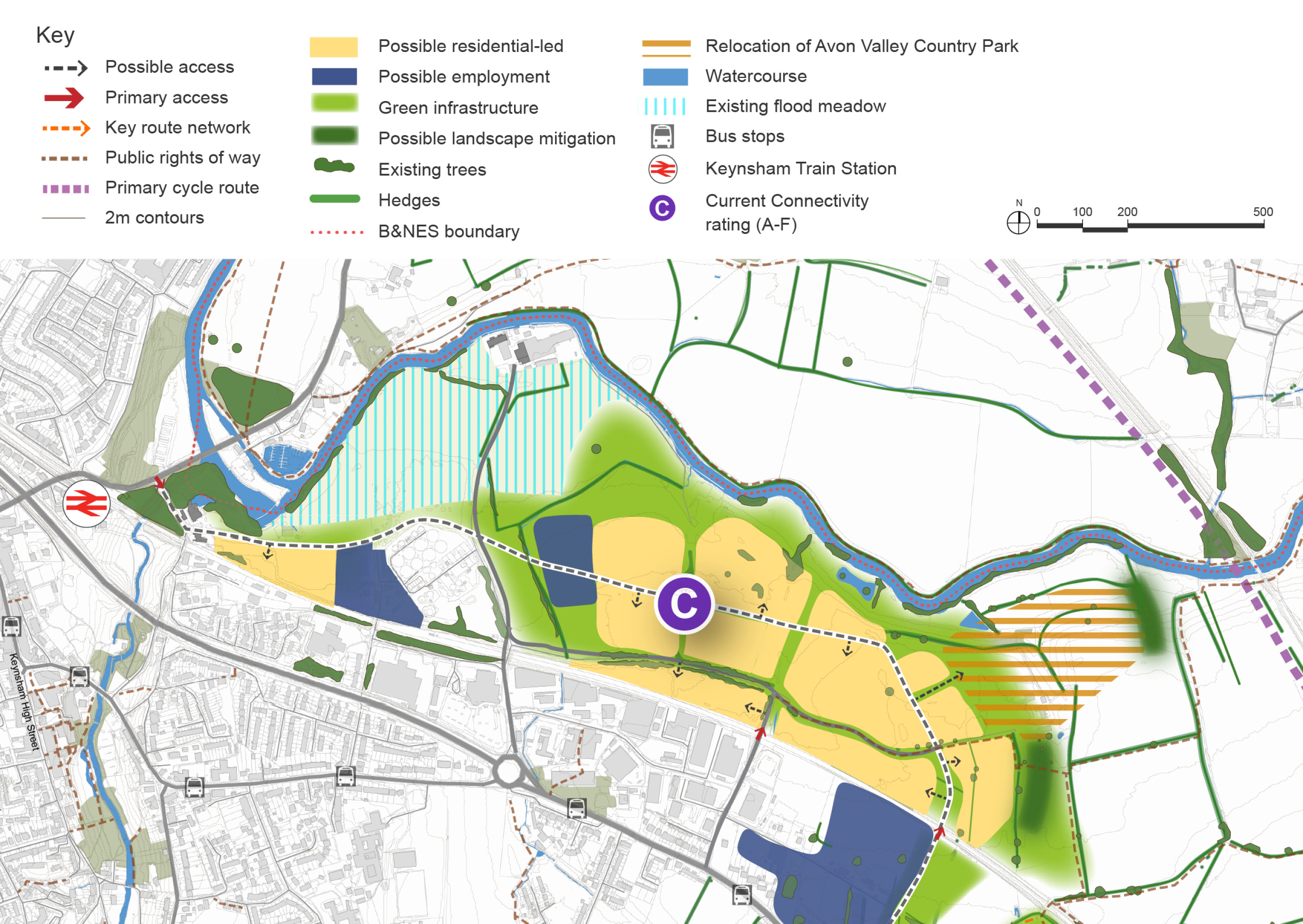 A road will be required to access the development site and it is envisaged that it will also play a more strategic role as a relief route, removing through traffic from Keynsham town centre, to the wider benefit of the town and enabling a greater focus on sustainable modes of transport on the town centre area network.