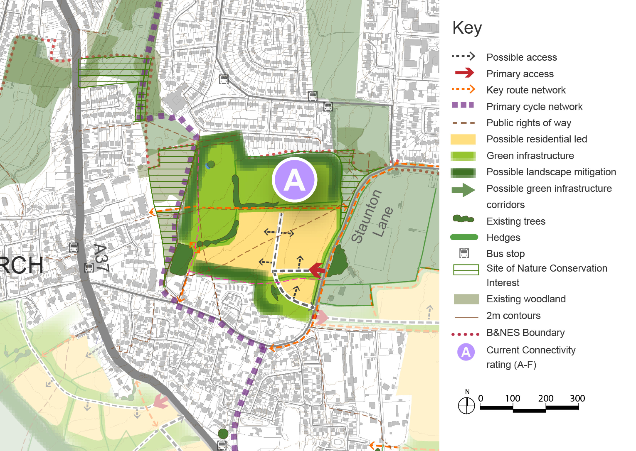 The site is located in the Green Belt in a sensitive gap between Whitchurch village and the City of Bristol to the north. Any release from the Green Belt and subsequent allocation for development will need to demonstrate exceptional circumstances. To understand and consider the impact of potential development on the Green Belt an assessment of the extent to which different parcels of land serve the five purposes set out in national policy is being undertaken. The emerging Stage 1 Strategic Green Belt Assessment being carried out by WECA will assess the site for its contribution towards meeting the five Green Belt purposes and also whether it meets the definition of grey belt set out in the NPPF and updated Planning Practice Guidance, which is now sequentially preferable to greenfield Green Belt in national policy. The assessment work is ongoing and will inform the Draft Local Plan. It is likely that following the Stage 1 Strategic Green Belt Assessment a more detailed (stage 2) assessment of the impact of development on more specific areas of the Green Belt will also be required.