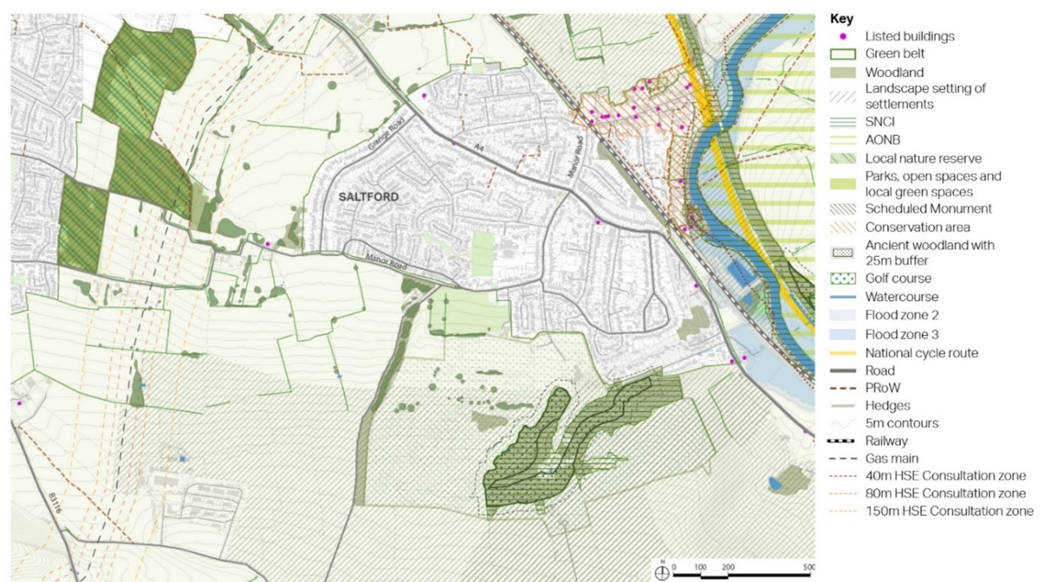 A key priority for the Keynsham and Saltford Village area of the district is to retain a significant green gap between the two settlements. As such, any development located to the west of Saltford Village will need to be carefully assessed in conjunction with the options at North Keynsham (see page 94) and South East Keynsham (see page 113), as well as in relation to land already allocated to the east of Keynsham. Development will need to include requirements to strengthen and enhance the remaining green infrastructure between Keynsham and Saltford, seeking to make it more accessible and useable.