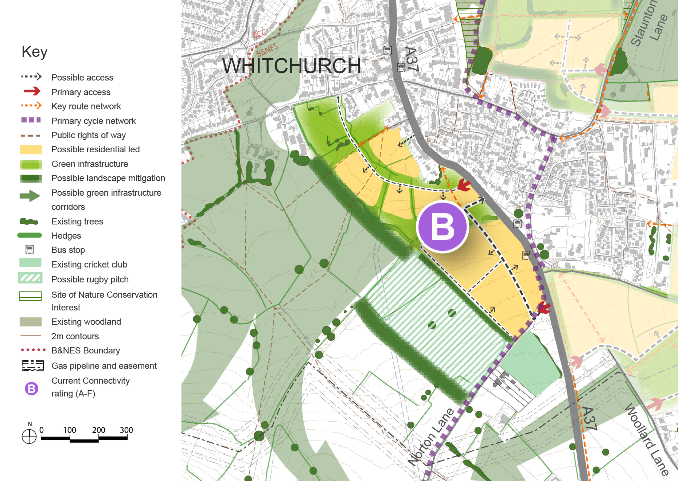 The West Whitchurch site is located to the west of the A37, between Norton Lane to the south, and Blackacre to the north.