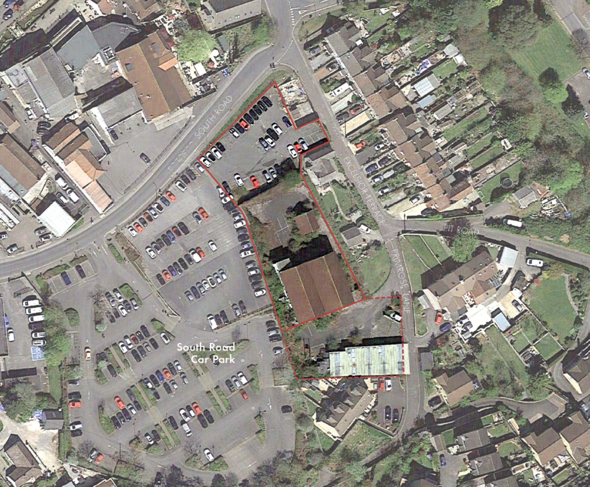 The site has a long border on the west to the town centre car park and is adjoined on the east by a single house plot, which was formerly part of the works, but now occupies a long strip of land that separates the site from Excelsior Terrace.