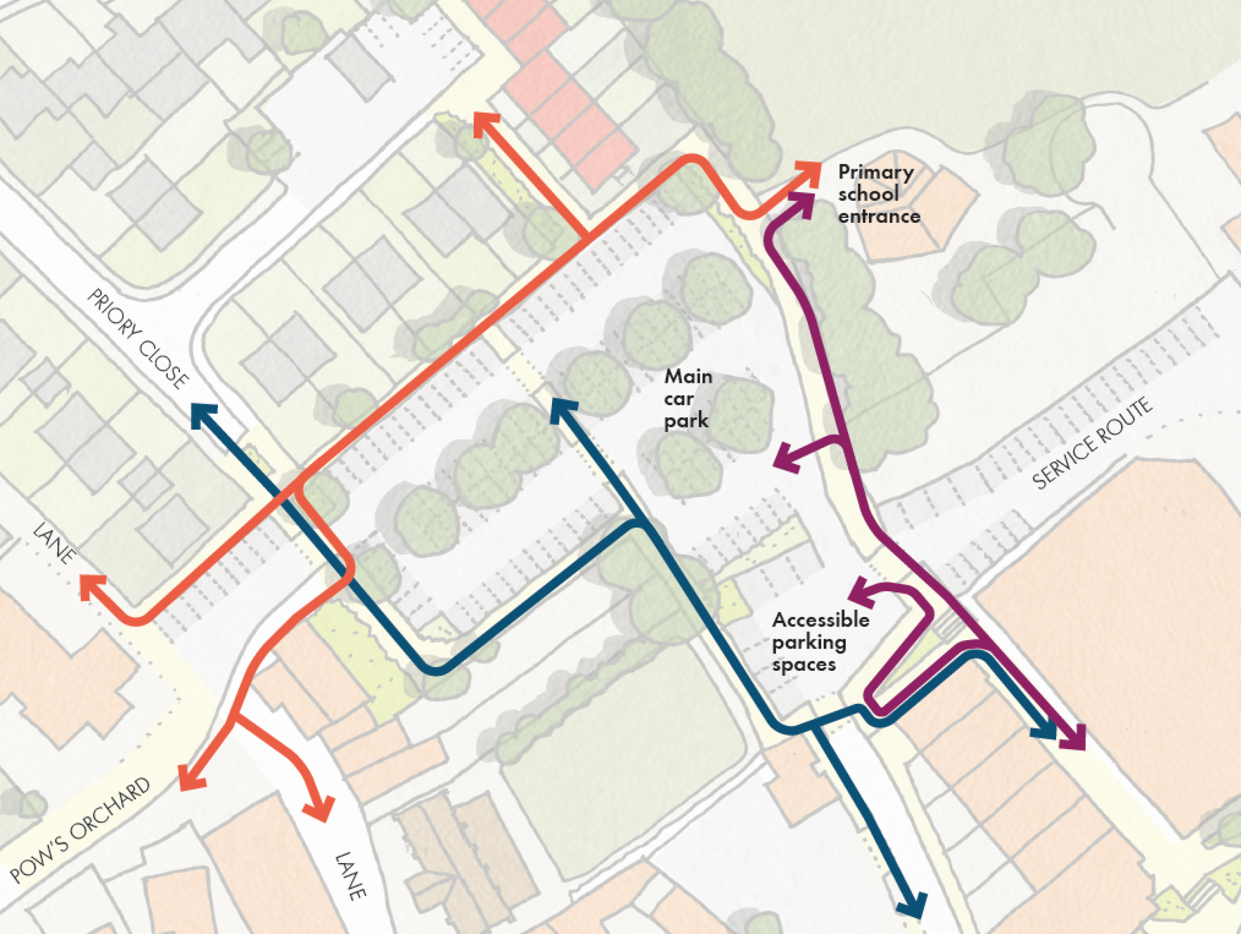 Although the Sainsbury’s car park is leased for the use of the store, it also provides a number of important pedestrian connections to and from the High Street, as well as the access to a key entrance to the school.