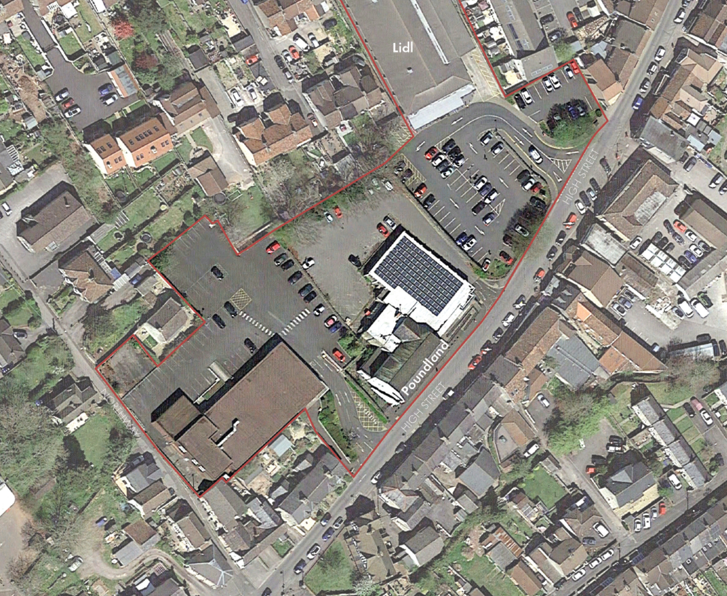 The sites all slope up and away from the High Street and engage with the back fences of older residential development to the rear, with the exception of the Lidl site where recently built new homes are to the north east on the site of a former factory.